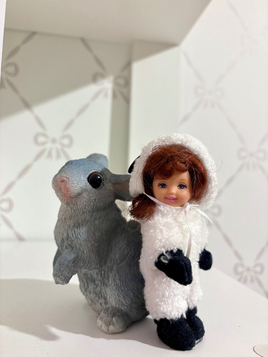 Как выяснилось, эта Келли в костюме овечки - из пасхальной серии, а значит фоткать ее полагается на фоне какой-то пасхальной милоты.