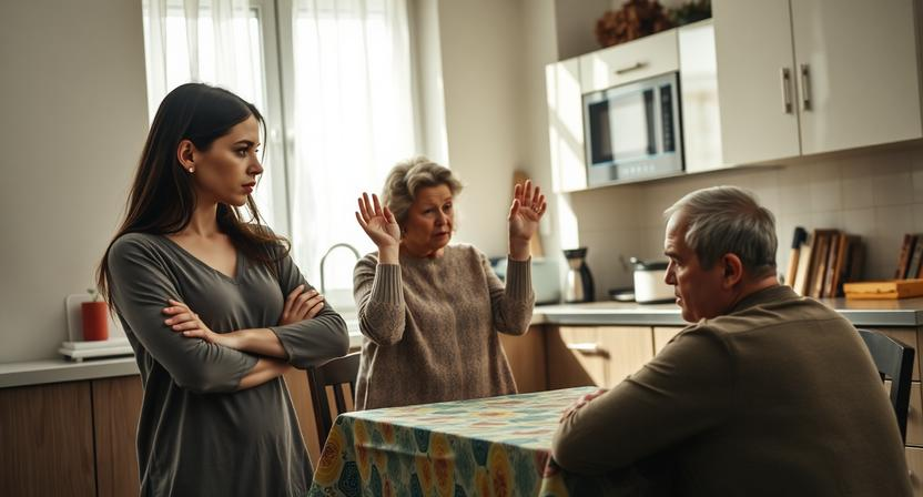 Антон сидел, вжавшись в стул. Он переводил взгляд с матери на жену и обратно, и было видно, что ему физически плохо от этого конфликта.