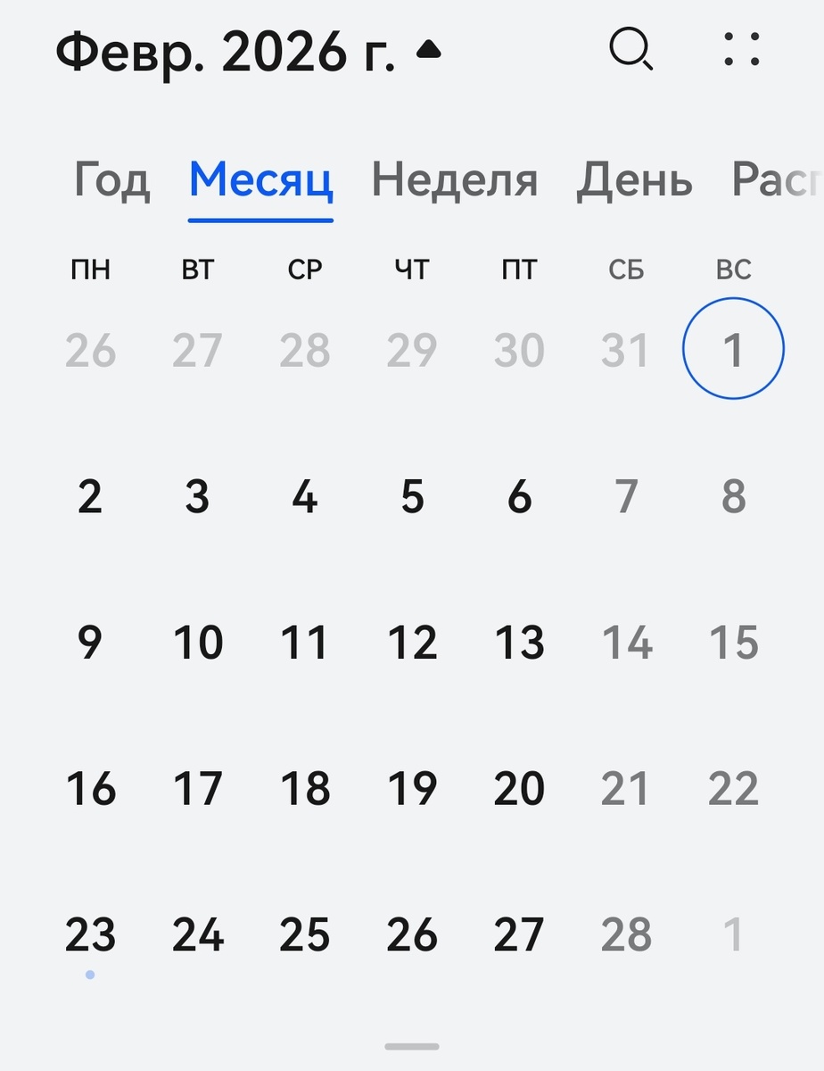 1 февраля выпадает на воскресенье.