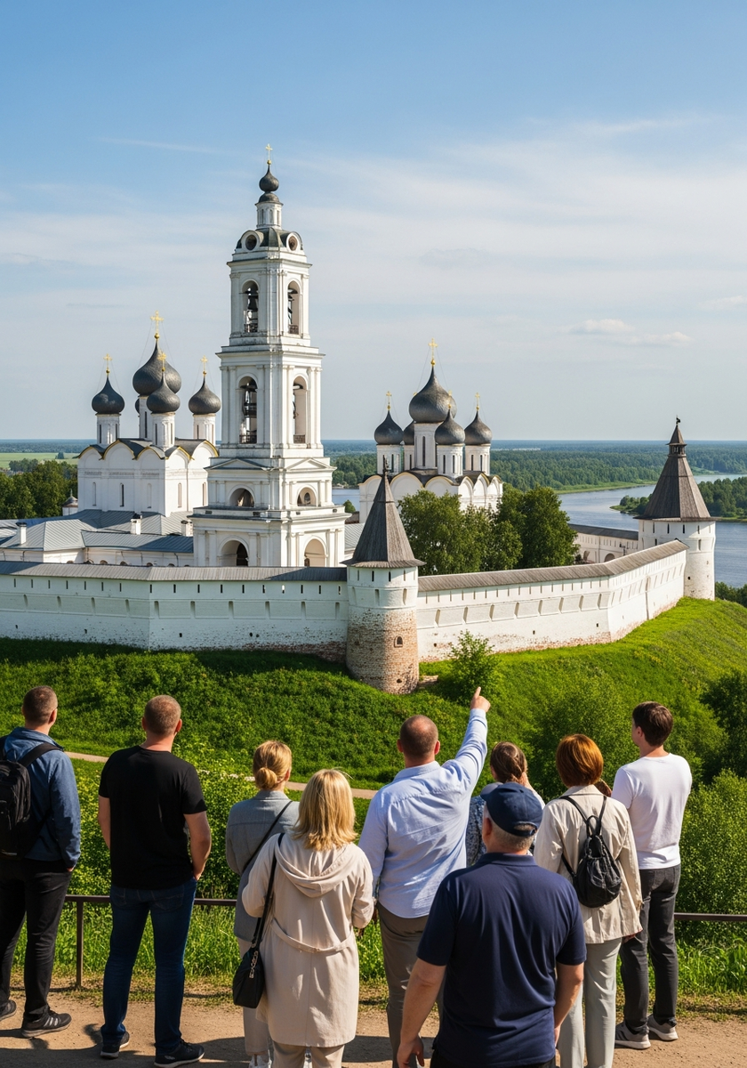 Древняя обитель XIV века на высоком берегу Нары с чудотворной иконой «Неупиваемая Чаша». Белокаменные стены и златоглавые храмы создают величественную панораму.