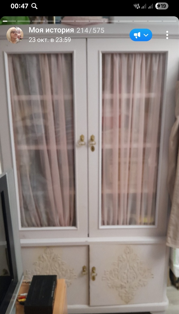 Изначально этот шкаф был книжным. Может быть когда-то он и был красавцем, но я с ним познакомилась уже не в том возрасте! Старенький, изрядно потрёпаный, в паутине, со следами какой-то