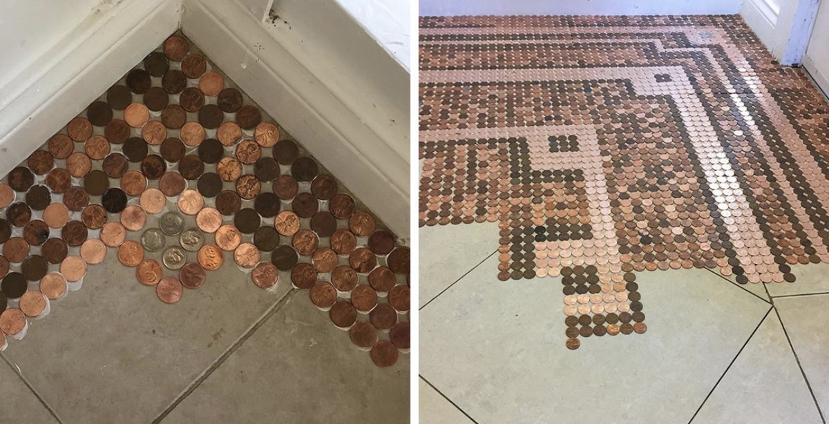 Находчивая домохозяйка захотела мозаичный пол и выложила его из 7500 монеток-пенни