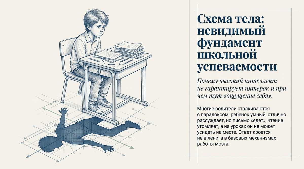 ❗️Кроме того, если эта система нестабильна, мозг ребёнка вынужден тратить колоссальные ресурсы не на понимание смысла урока, а на то, чтобы просто удержать базу выполнения — контролировать положение спины или направление движения руки. Именно поэтому развитая речь и высокий интеллект не гарантируют отсутствия проблем. Ребёнок может отлично рассуждать, но его письмо или навыки копирования будут «сыпаться» из-за незрелости сенсомоторных механизмов.