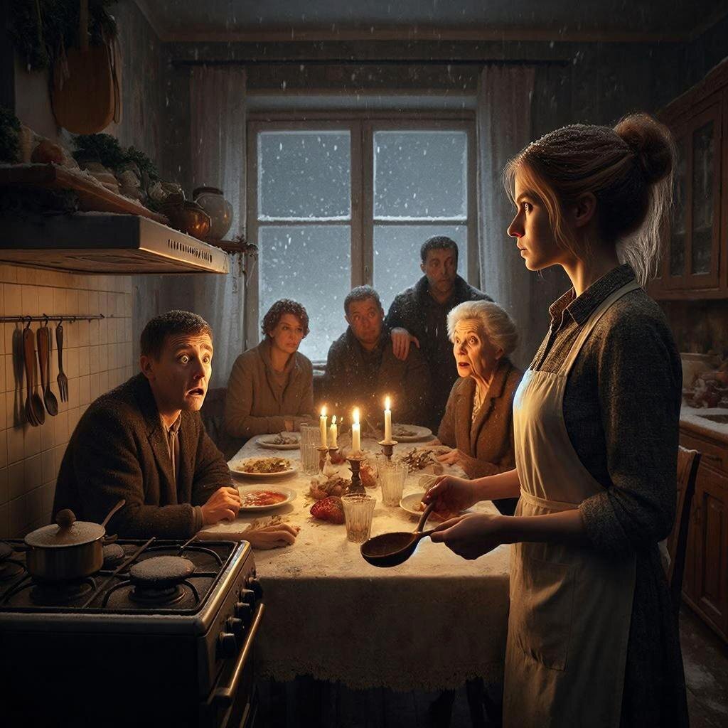 Он вошёл на кухню, пропахший морозом и чужими духами. За ним — Антонина Степановна в своём лучшем кашемировом пальто, золовка Люда с мужем-молчуном, и деверь Костя, уже весело подвыпивший. Все они заполонили маленькое пространство, оттеснив меня к раковине.