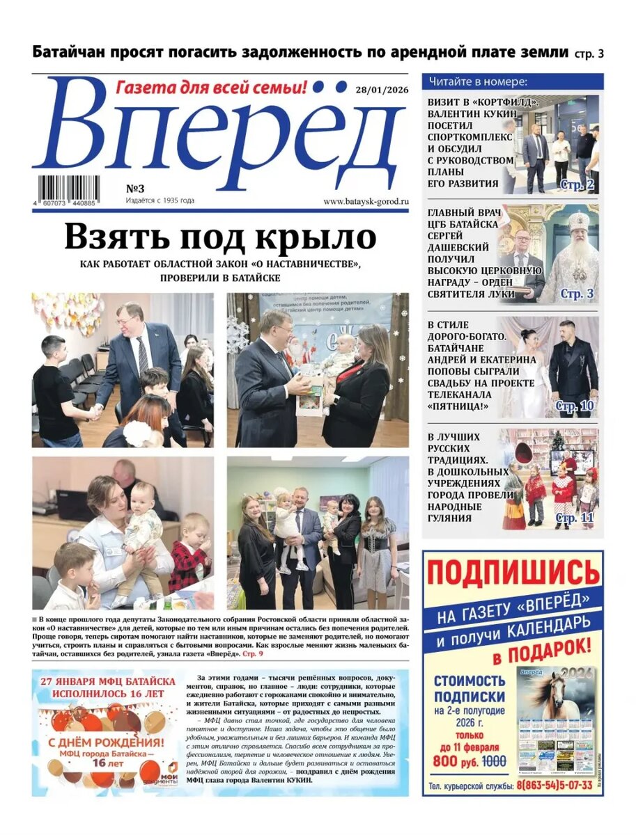 Визит в «Кортфилд». Валентин Кукин посетил спорткомплекс и обсудил с руководством планы его развития Стр. 2 Главный врач ЦГБ Батайска Сергей Дашевский получил высокую церковную награду – орден святителя Луки Стр. 3 В стиле дорого-богато. Батайчане Андрей и Екатерина Поповы сыграли свадьбу на проекте телеканала «Пятница!» Стр. 10 В лучших русских традициях. В дошкольных учреждениях города провели народные гуляния Стр. 11