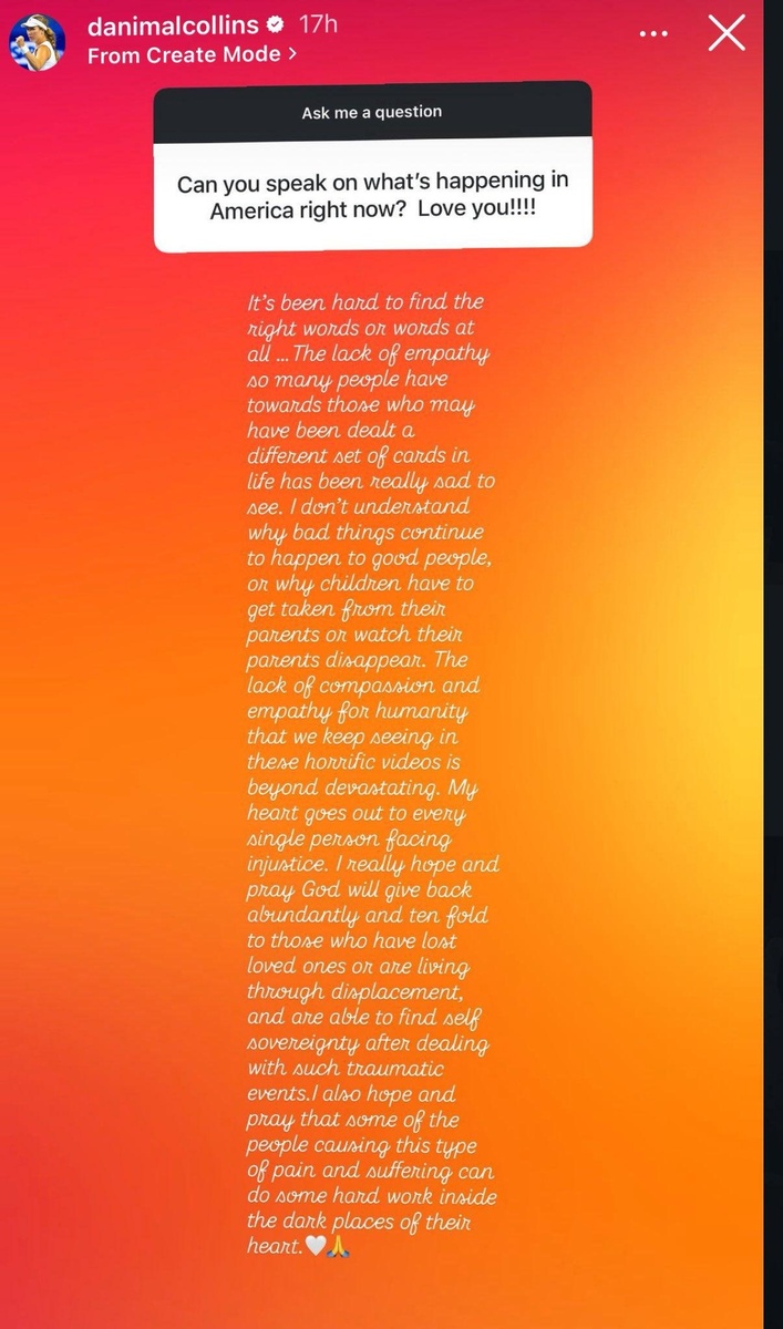 Даниэль Коллинз высказалась в Instagram о текущей ситуации в США