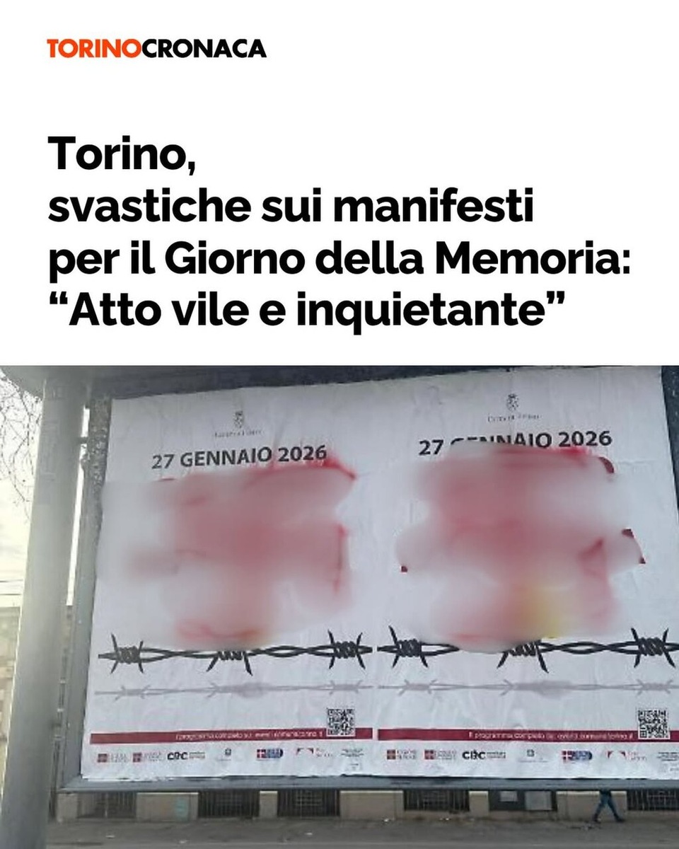 ✅ СПРАВКА: Эта новость переведена и размещена при помощи искусственного интеллекта Chat GPT без участия человека, в случае если вы заметили ошибку, или новость не соответствует реальному событию — сигнализируйте, исправим. 👉 Искренне Ваш Сержио Боттичелли: https://www.facebook.com/mercator.cz __________________ Свастики и нацистские символы появились на плакатах, посвященных Дню памяти, 27 января, дню, посвященному памяти Холокоста. Оскверненные плакаты находились на улице Чинья и корсо Виджевано, на окраине столицы Пьемонта. По этому инциденту проводит расследование Дигос из полиции Турина. Рисовать свастики на плакатах Дня памяти — это подлое и тревожное действие. Это не шалость, это звонок тревоги и ясный сигнал о том, что антисемитизм снова поднимает голову, и есть те, кто делает вид, что не замечает этого, прокомментировала сенатор от Italia Viva Сильвия Фреголент. Те, кто минимизирует или отрицает рост антисемитизма, готовят почву для тех же ошибок прошлого. Память — это не ц