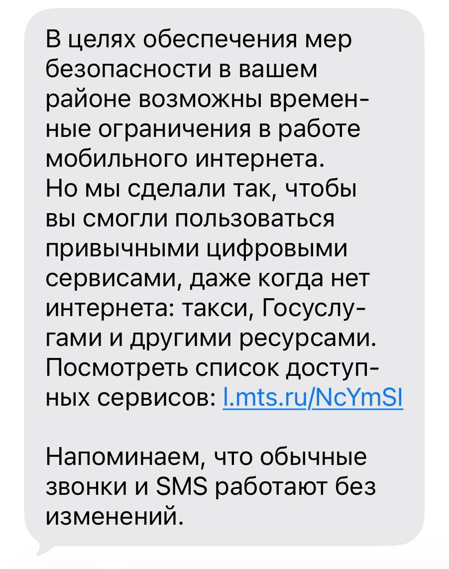 Люди заметили проблему 25 января — у некоторых перестали грузиться определенные сайты, а у кого-то не всегда проходят звонки. Проблема не зависит от оператора связи или места — сбоит у разных провайдеров и по разным адресам. При этом у некоторых читинцев проблемы со связью могли быть на одном и том же телефоне по одному адресу, но на другом месте всё работало хорошо. У некоторых по одному адресу связь, например, от МТС не работала, а Yota — не сбоила. Некоторые из подписчиков тг-канала @chita.ru предположили, что кто-то блокирует и глушит связь специально. Пресс-службы операторов «МегаФон» и Yota прокомментировали, что с их стороны ограничений нет, а сеть работает стабильно: Возможные сложности могут наблюдаться по не зависящим от нас причинам. Оператор МТС своим абонентам написал, что интернет могут ограничивать для обеспечения безопасности. При этом компания отметила, что СМС, звонки, сервисы такси и «Госуслуги» работают стабильно. Получить комментарий в пресс-службе МТС пока не