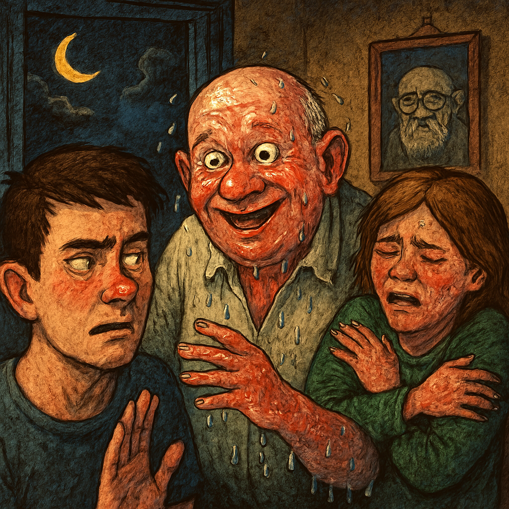 И оставляет на полу следы, как улитка, только крупная и пенсионная. Рубашку я кинул в стирку — от неё пахло уксусом, фруктами и… скидками. На следующий день мама покрылась пятнами.