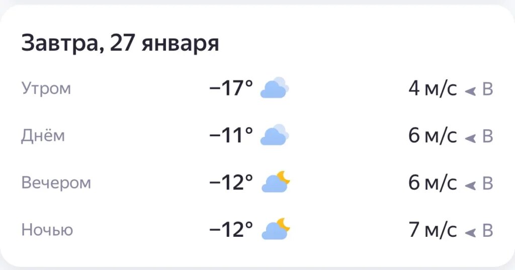 Завтра в областном центре сохранится погода, практически идентичная сегодняшней, вот только направление ветра поменяется. 27 января в Астрахани днем ожидается ‑11 градусов, без осадков. К вечеру температура воздуха понизится всего на один градус. Ветер восточный, 6 м/с. В народном календаре 27 января – Нинин день. Наши предки считали, что если в этот день выпить стакан натурального коровьего молока, это укрепит здоровье и придаст сил. Народные приметы в этот день гласят: Сообщение 27 января в Астрахани синоптики не обещают потепления появились сначала на Астрахань.Ру последние новости региона.