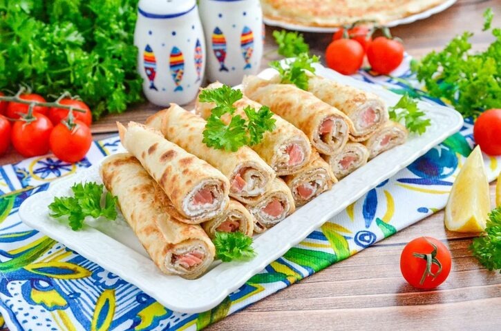 Совет: использовать свежую или качественно замороженную красную рыбу и свежий творожный сыр. Для блинов важно получить тесто правильной консистенции — оно должно быть достаточно жидким, чтобы легко распределяться по сковороде, образуя тонкий слой.