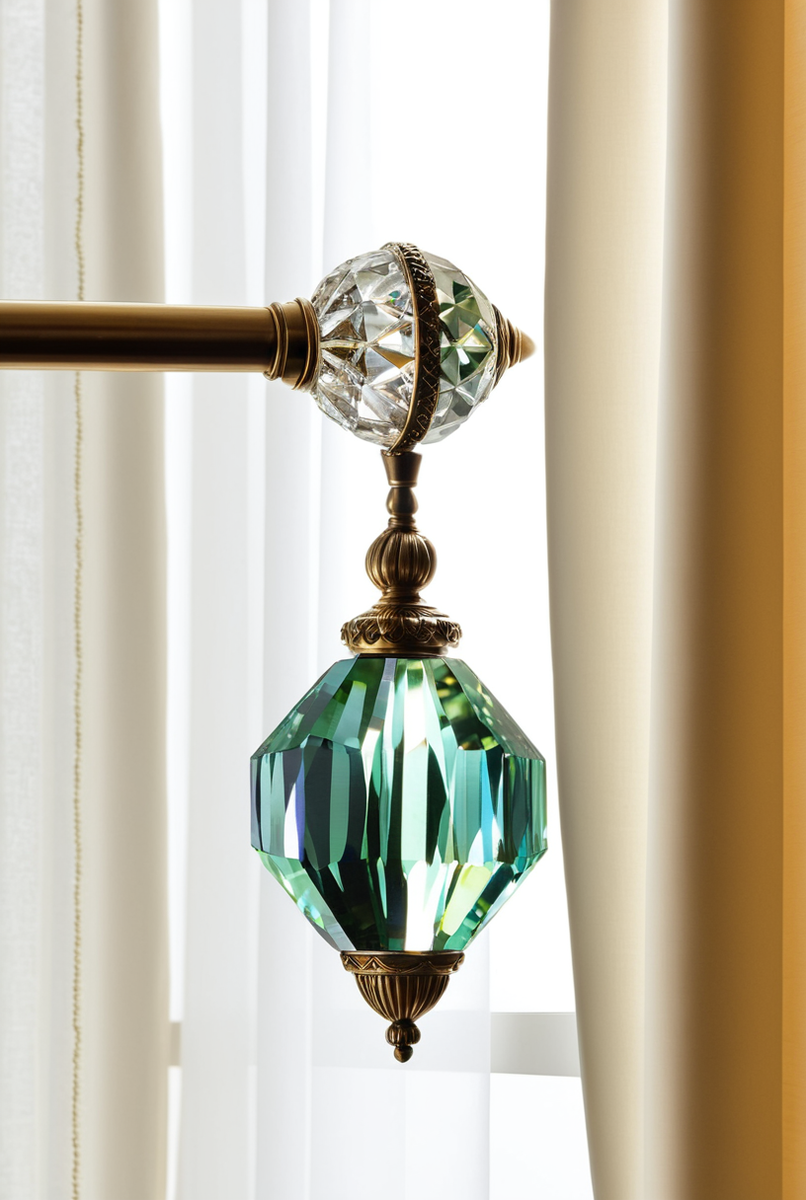 Для дизайна интерьера в стиле лофт ищите геометрический металлический наконечник или его имитацию под фитинг. Для арт-деко подойдут крупные, броские аксессуары для штор: глянцевый шар, эффектный лист из металла или большой стеклянный кристалл. Главное — точный подбор по стилю.