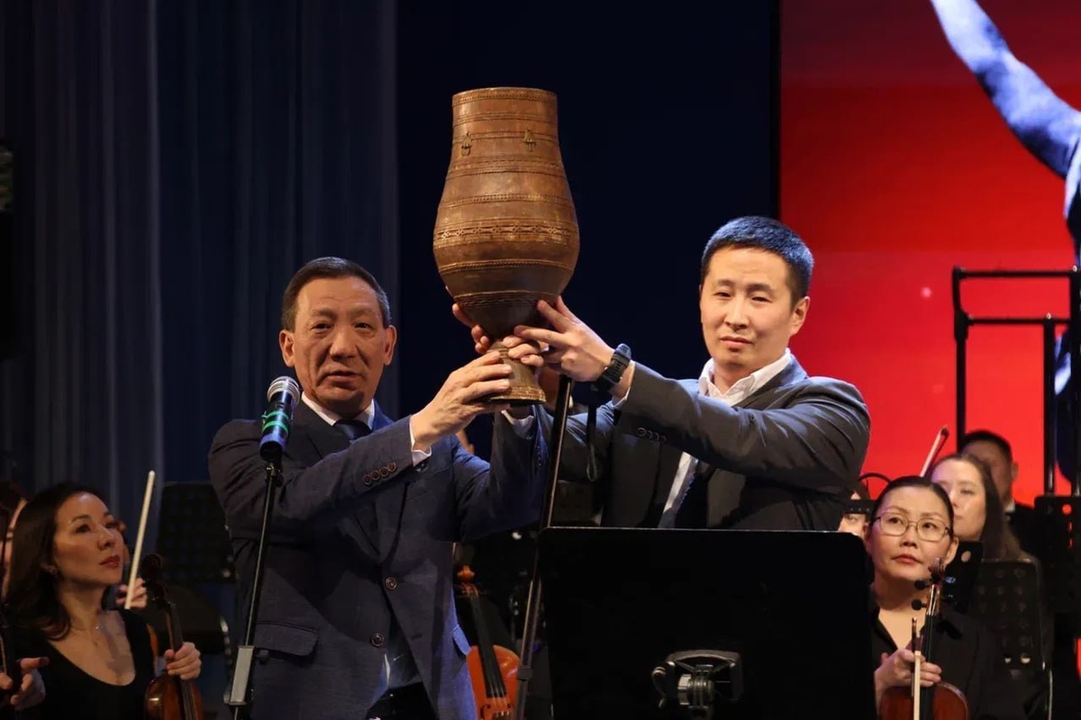 В Якутии состоялась символическая передача эстафеты от завершившегося Года защитника Родины новому, 2026 году, который объявлен в республике Годом культуры. Министр по делам молодежи и социальным коммуникациям республики Петр Шамаев передал традиционный якутский сосуд — чороон — министру культуры Афанасию Ноеву, символизируя преемственность главных тем года. Подводя итоги, Петр Шамаев отметил возросший интерес молодежи к истории и выразил уверенность, что работа по патриотическому воспитанию будет продолжена. Фото: Саха академического театра имени Ойунского yk24.ru в 📲 MAX | 💬 Telegram | 💙 ВК | 📺 VK Видео