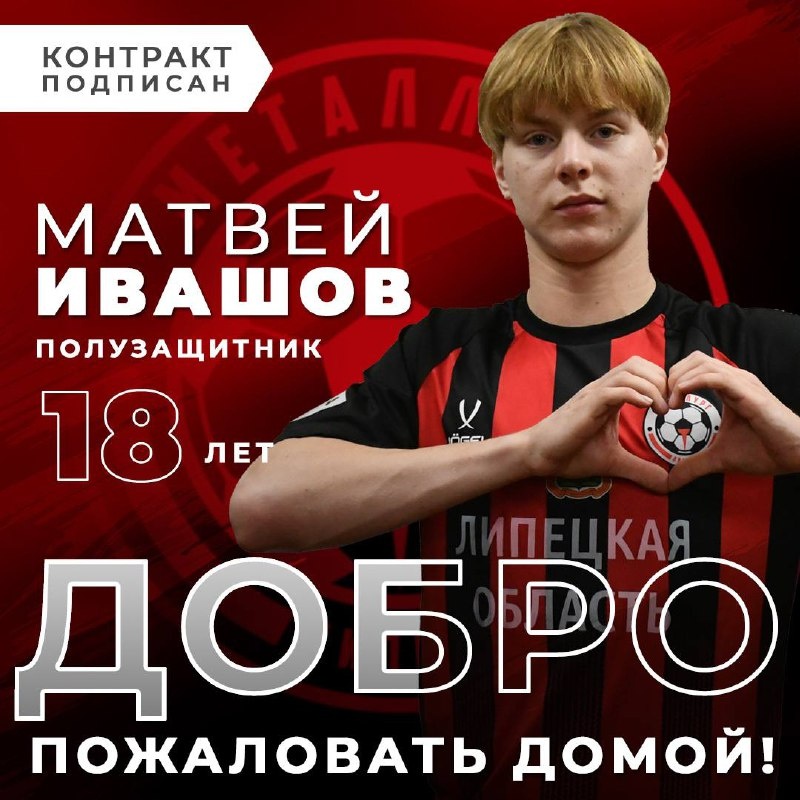 🚨 Полузащитник Матвей Ивашов пополнил состав Липецкого «Металлурга».