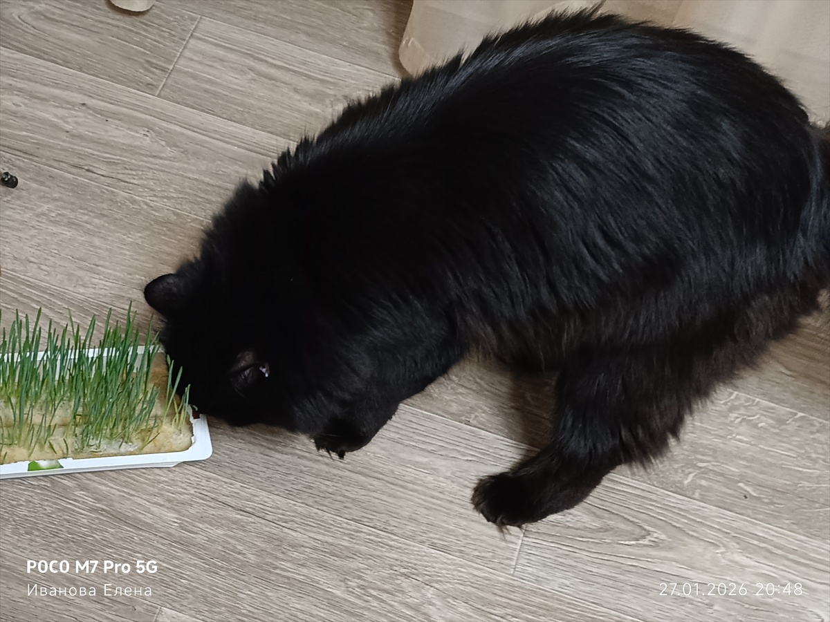 Мне написали, что коту Василию просто необходима свежая трава — и я решила: а почему бы не попробовать? Конечно, в голове тут же всплыли воспоминания: на Севере мы уже покупали для Васи траву, но он тогда даже не притронулся. «Может, он просто был ещё слишком мал? — подумала я. — Вдруг сейчас, когда он повзрослел, вкусы изменились?» Да и потом — столько людей советуют, вряд ли все они могут ошибаться! К тому же я твёрдо убеждена: к мнению читателей нужно прислушиваться. Ведь я пишу не ради огромных заработков — я здесь, чтобы делиться историями, общаться. И вот я купила семена, с любовью вырастила траву и с торжественным видом преподнесла её Василию: