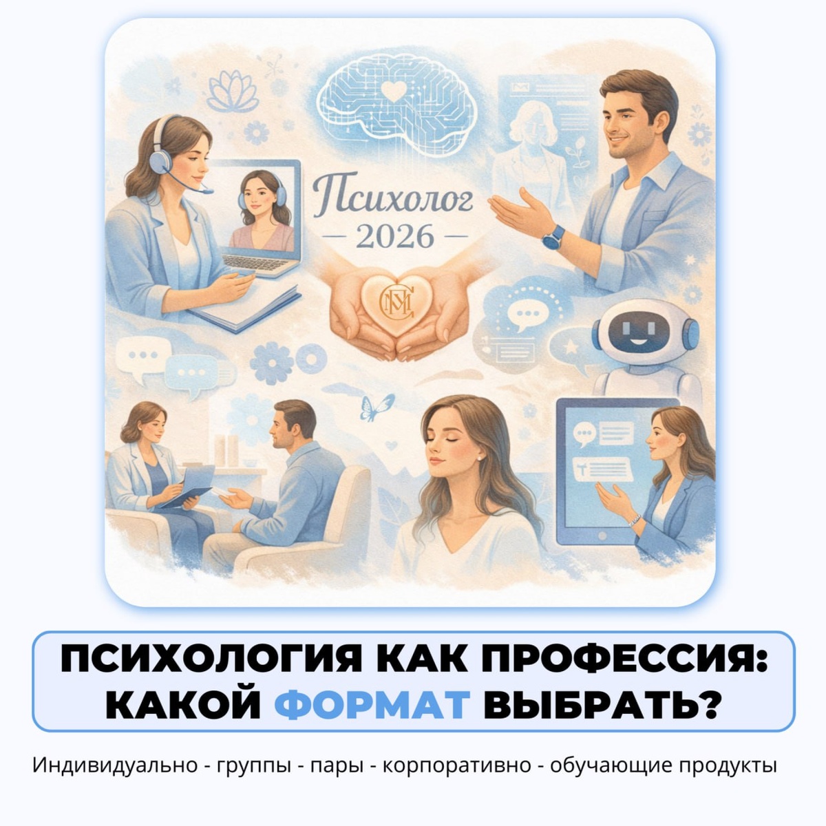 ? Если вы только присматриваетесь к психологии, у вас может возникнуть вопрос: как выглядит работа психолога в реальной жизни и какие форматы ведения практики доступны? Сейчас форматов ведения практики очень много, они все разные, и вы можете выбрать тот, который вам по душе. 5️⃣ форматов, с которых можно начать путь 1. Индивидуальная работа Если вам нравится глубина, спокойный темп и личный контакт один на один. 2. Группы Если вам интересна динамика людей, поддержка и работа с темой сразу у нескольких участников. 3. Пары Если вам близка тема отношений и вы умеете держать баланс между двумя точками зрения. Обычно к этому формату приходят чуть позже, когда появляется опыт. 4. Корпоративный формат Если вам интересны темы стресса, выгорания, общения и конфликтов, и вы готовы работать в более деловом стиле, например, в качестве специалиста по консультациям для бизнеса или HR. 5. Работа в образовательных учреждениях. Например, как школьный психолог, где вы помогаете детям и подростк