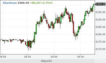 Фьючерс на алюминий превысил $3,300.00 за тонну