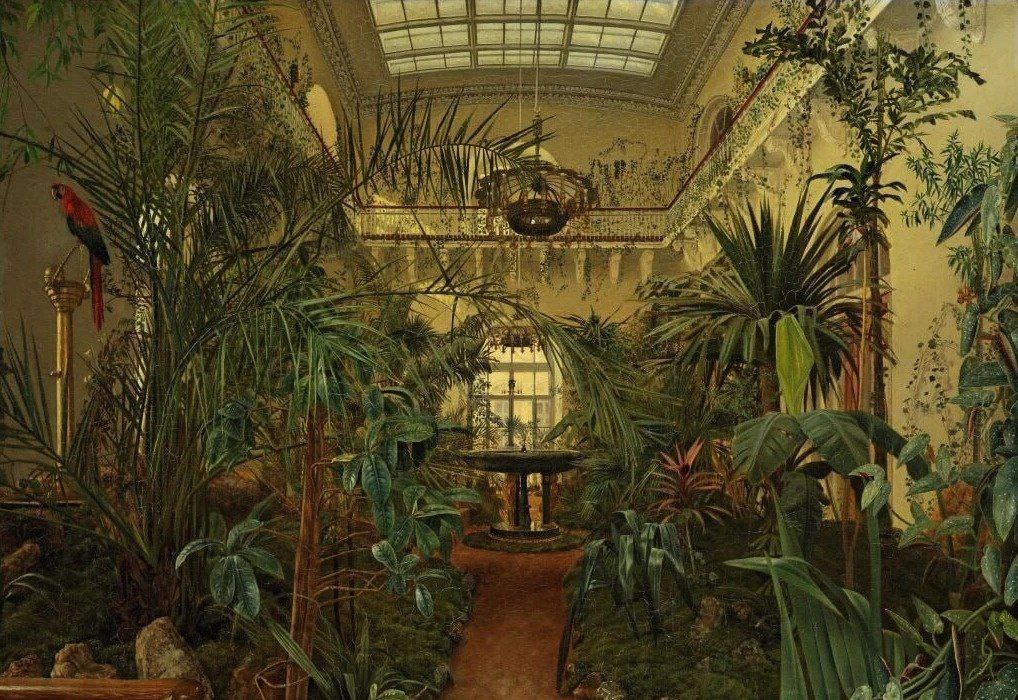 Холст, масло. 47 х 67 см Михаил Иванович Антонов (середина XIX) Полотно «Зимний сад Зимнего дворца в Петербурге» было написано художником Михаилом Антоновым под руководством его наставника Алексея Венецианова, лично выбравшего для него этот интерьер. На картине можно детально рассмотреть убранство этого изысканного рукотворного уголка природы: композиции из экзотических растений, обвитый зеленью балкон, фонтан, камни, осветительные приборы. Интересный факт: произведение получило высокую оценку современников, и в 1841 году художник был удостоен малой серебряной медали Императорской Академии художеств. Однако, по прошествии времени подлинное имя автора затерялось. Долгое время полотно из-за ошибки писаря считалось работой некоего Антипова. Установить истинное имя автора удалось сотруднику Третьяковской галереи. #культура