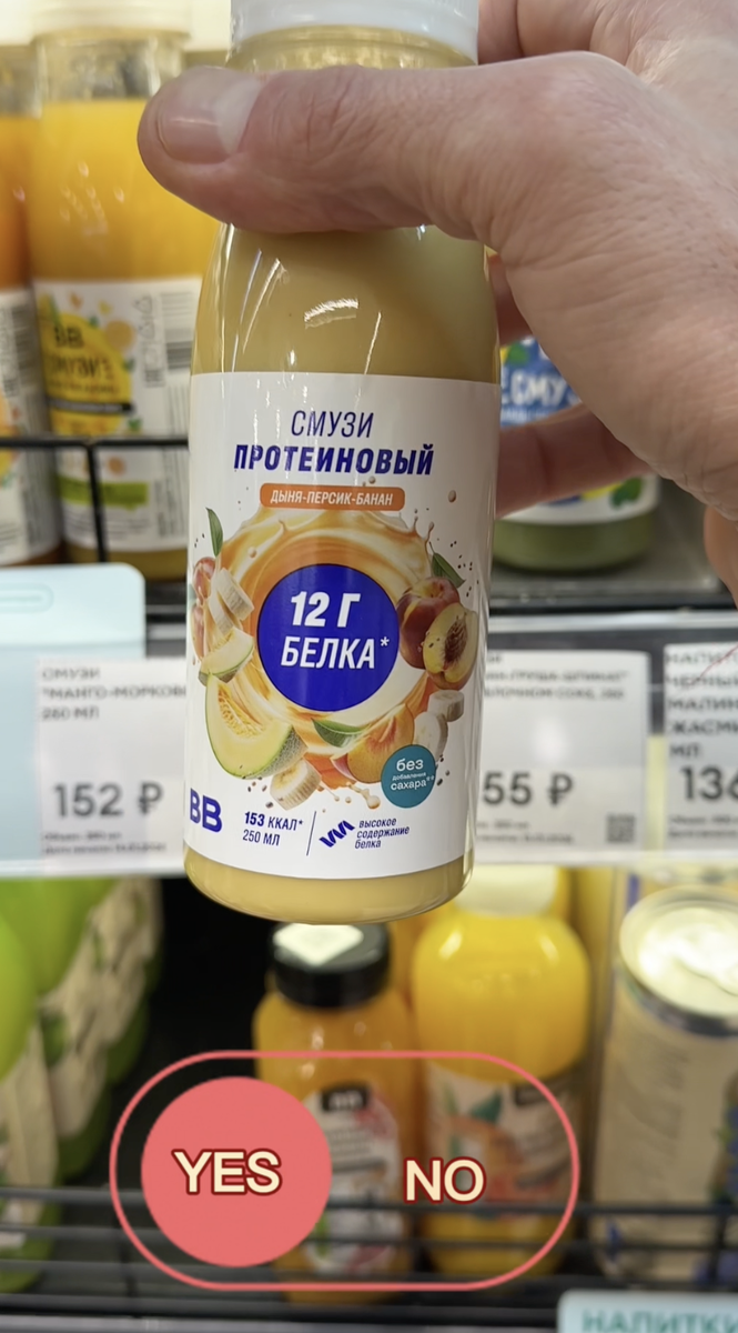 🧋ВВ_Протеиновый смузи: ДА или НЕТ? Вкусвилл не перестает удивлять. Случайно забрел во Вкусвилл и увидел «протеиновый смузи», конечно же не смог пройти мимо )))😇 Что мы имеем: 👌250 мл фруктового пюре, обогащенного белками 👌61,2 кКал на 100 гр/ 153 кКал на бутылку 👌Без добавленного сахара 👌4,8 гр белка на 100 гр/ 12 гр белка на бутылку (если учесть, что в обычном пюре вообще нет белка) К чему вопросики: 📛ЦЕНА (ну это же Вкусвилл) 😥Вкус ((( вкус меня расстроил, второй раз не куплю ‼️Специально, для контраста, купил за 19 рублей пюре из детского питания яблоко-морковь, в нем конечно нет белка, но вкус на 100 шагов вперед. ⚠️Вывод: попробовать конечно можно, для пищевого разнообразия, но ВАУ-эффекта не произошло, однозначно больше не куплю. #ВХ_находки #пп #зож