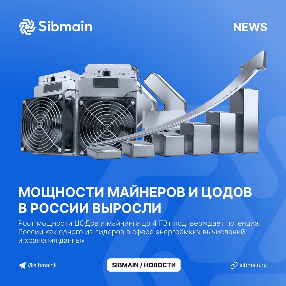 📰📰📰📰 ➡️Мощности майнеров и ЦОДов в России выросли В 2025 году мощность подключённых к электросетям центров обработки данных (ЦОД) и майнинговых установок в России выросла на треть. Факторы роста: ⏺Конкурентные тарифы на электроэнергию; ⏺Миграция майнинга из других стран; ⏺Регуляторная определённость 📍Рост мощности ЦОДов и майнинга до 4 ГВт подтверждает потенциал России как одного из лидеров в сфере энергоёмких вычислений и хранения данных