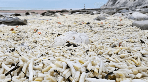 ведь не каждый день можно увидеть побережье, заваленное картошкой с