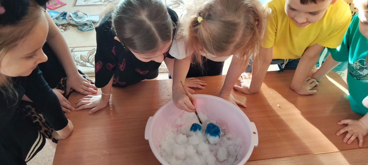 Дети по природе своей – исследователи. Они с радостью и удивлением открывают для себя окружающий мир. Наша задача - поддерживать стремление ребёнка к экспериментированию, создавать условия для исследовательской деятельности. Дети с удовольствием изучали свойства и время таяния при комнатной температуре снега, изучили состав снега и пришли к выводу, что в нем находятся грязные примеси. Ребята провели опыт «Как окрашивается снег», определили, как именно и с какой скоростью краска проникает в снежную толщу. Самостоятельно проведенные опыты, вызвали у детей большой интерес и восхищение!
