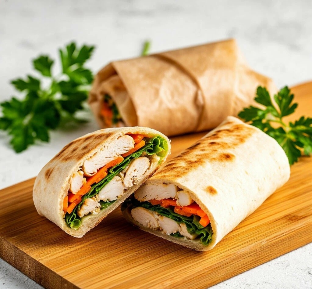 СОВЕТ ОТ МАРУСИ: 🐾 Чтобы лаваш не трескался при сворачивании,его можно слегка сбрызнуть водой или на секунду подержать над паром. Вместо курицы можно использовать ветчину, слабосолёную красную рыбу или даже яичный салат. Фантазируйте!