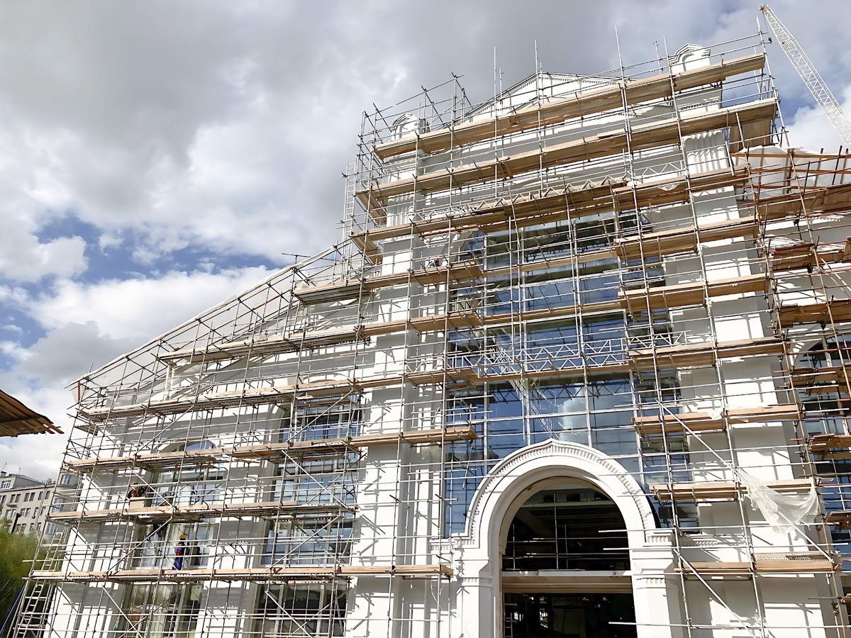 Дом культуры ГЭС-2 — редкий пример проекта, где новое содержание не вытеснило историю, а потребовало от инженеров максимальной точности и дисциплины. Здание бывшей городской электростанции начала XX века, расположенное в самом центре Москвы, в районе Якиманки, сегодня живет как открытое культурное пространство, но путь к этому результату был далек от стандартных строительных решений. Работы компании «ПОЛАТИ» проводились с 2020 по 2021 год внутри охраняемого памятника архитектуры — со сложной геометрией, действующими ограничениями по доступу и необходимостью сохранить исторические конструкции. В этих условиях наши сотрудники выполнили монтаж фасадных, подвесных и потолочных строительных лесов, создав рабочее пространство для всех этапов реставрации и инженерных работ. На проекте было задействовано двадцать два рабочих, два специалиста инженерно-технического состава, общий объем выполненных работ составил 21 тыс. м³. Ключевой задачей стало не просто установить временные конструкции, а вс