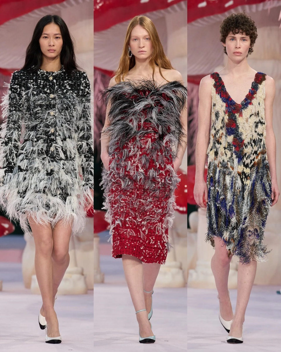 26 января 2026 года Grand Palais в Париже вновь превратился в храм haute couture. На этот раз внимание всех собравшихся привлек дебют нового креативного директора Chanel Матье Блази. Его первое шоу подчеркнуло тему метаморфозы женщины, свободы и личной истории через образы птиц и символы парящей души. Под стеклянным куполом воссоздали сюрреалистический сад, где гигантские грибы и плакучие ивы в нежно-розовых тонах будто оживали под мягким светом, напоминая сказку “Алиса в Стране чудес”. Коллекция открывает диалог между мастерами ателье и самой женщиной, которая носит одежду. Haute couture здесь превращается в холст для личной истории каждой женщины: тело и душа становятся единым целым, движения легки, а самовыражение интимно. Каждая модель выбрала свой «эмоциональный артефакт» — письмо, строчку поэзии или памятную дату, который вышили в подкладке одежды в ателье Lesage. Классические коды Chanel: костюм, N°5, помада не потеряли своей узнаваемости, но обрели новую жизнь, делая образы не