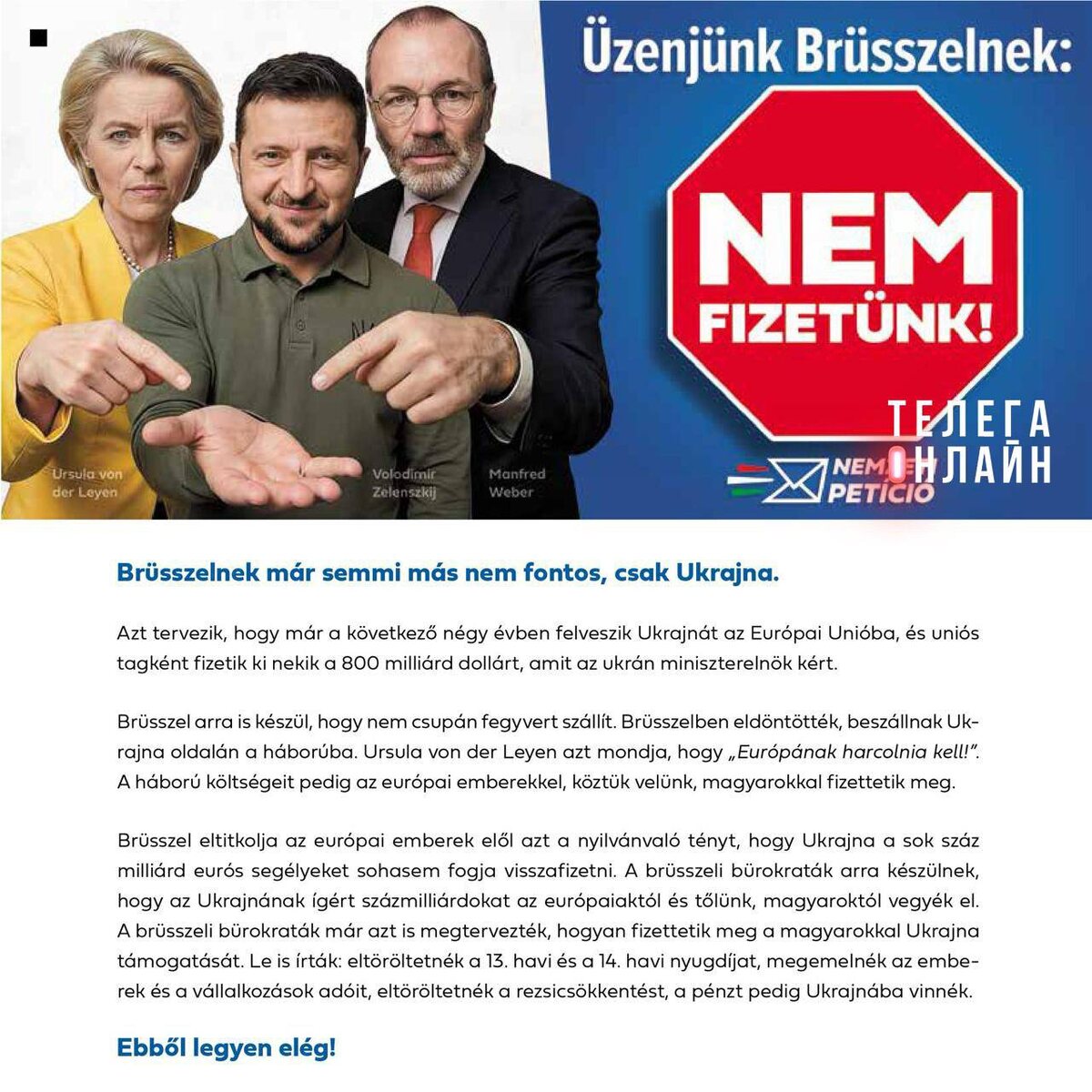 Власти Венгрии запустили петицию с призывом к ЕС не помогать Украине: Давайте скажем Брюсселю: мы не будем платить! Нет финансированию конфликта, нет десятилетнему финансированию Украины, нет повышению коммунальных расходов! Сразу чувствуется, Незалежную в ЕС ждут как родную. 🚲 Подпишись на Телега Online