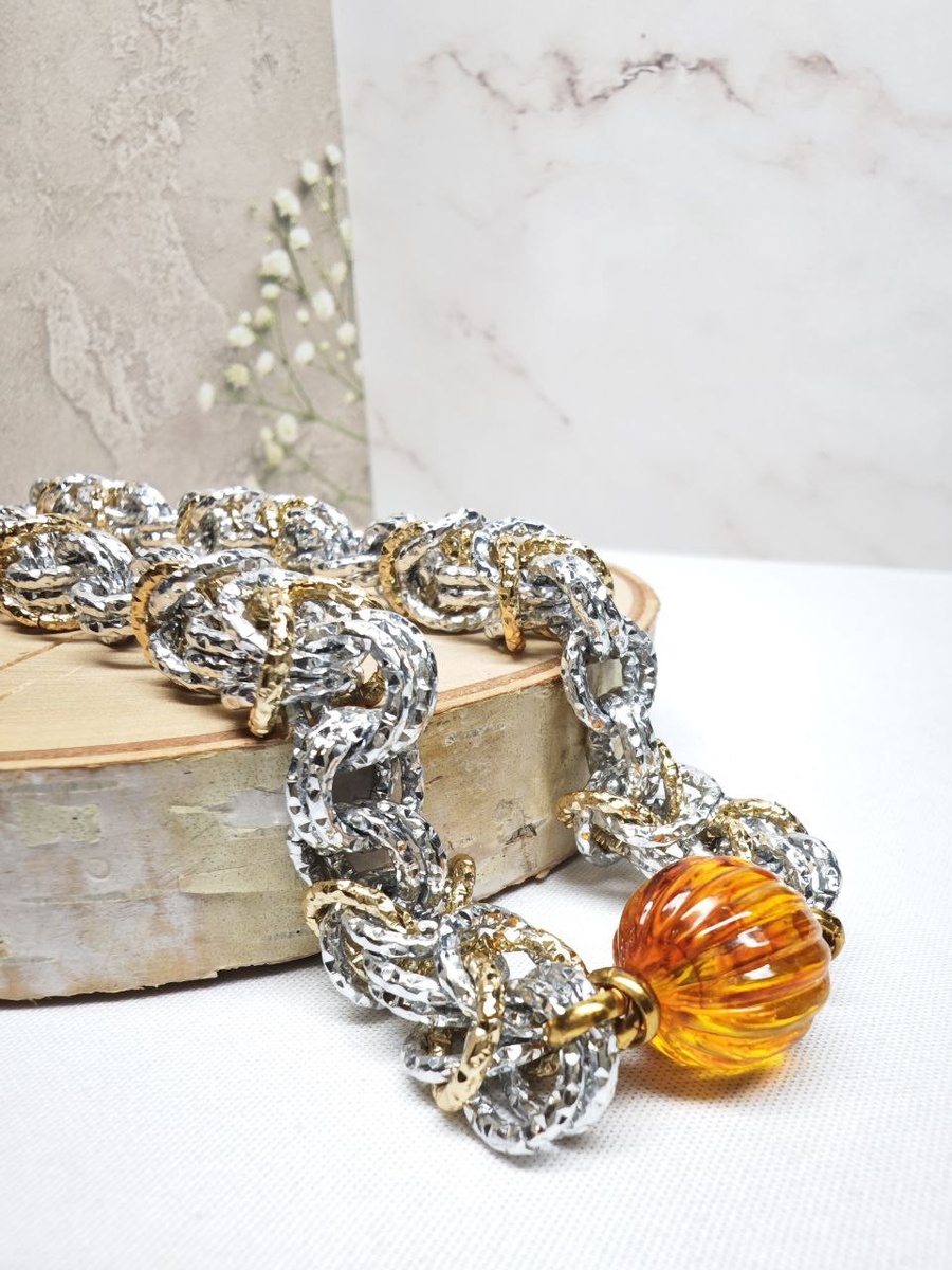 ☀️ Это колье — игра контрастов, в которую невозможно не влюбиться. Массивное плетение ручной работы из фактурных звеньев сочетает в себе холодное серебро и теплое золото. Такой «биколор» — главный тренд сезона, позволяющий сочетать украшение с любыми вашими аксессуарами. Центр композиции — крупная рифлëная бусина тёплого янтарного цвета. Она словно светится изнутри, добавляя образу мягкости и притягивая взгляды к зоне декольте. С чем носить? ✨ С базовой белой рубашкой для офисного шика. ✨ С черной водолазкой, чтобы создать яркий акцент. ✨ С летящим платьем для свидания. Будьте разной, будьте заметной! - Длина: 50 см плюс удлинительная цепочка 3см - Диаметр центральной бусины: 16 мм При желании можно приобрести браслет. - Уход: бережно хранить в сухом месте, избегать контакта с бытовой химией и парфюмом. - Пишите в Директ — @oliibijou Длина: 50 см Колье 💸 2 450 Браслет 💸1800 #украшения #колье #янтарь #handmade #стиль