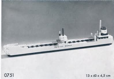 Но мало кому известно, что в 1959-1960 годах для Maersk компания LEGO выпускала клееную демонстрационную модель для розничных продавцов первый корабль LEGO Maersk - REGINA MAERSK. Оригинальный (не-LEGO) грузовой корабль был построен на верфях Odense Denmark в 1954 году, и стал первым в истории кораблем Maersk Line, который имел расцветку Maersk Blue, ставшую торговой маркой всего флота Maersk. Судно было выведено из эксплуатации в 1972 году, незадолго до выхода первого официального набора LEGO Maersk. Компания LEGO за долгую историю своего существования выпустила более двадцати тысяч клеенных моделей, специально созданных для рекламных целей и недоступных широким массам потребителей. Восстановить эту модель в строгом смысле сегодня невозможно, поскольку 0751 REGINA MAERSK был собран из кубиков, изготовленных из ацетата целлюлозы, поэтому даже сохранившиеся кубики будут немного деформированы в сравнении с элементами из АБС-пластика. Сама модель была собрана из обычных синих кубиков без использования специальных элементов LEGO, которые попросту не существовали в 1959 году, в том числе в искомом цвете.