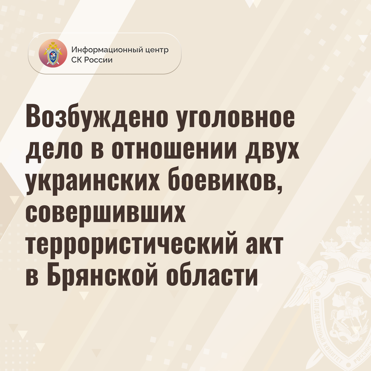 Возбуждено уголовное дело в отношении двух украинских боевиков, совершивших террористический акт в Брянской области