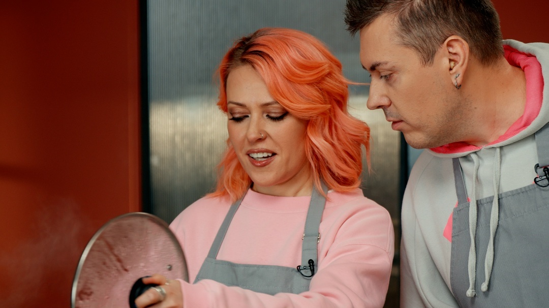В воскресенье, 1 февраля, в программе «Фирменный рецепт» в кулинарном поединке сойдутся артисты, которые годами делит одну сцену и заряжают зрительные залы своей энергией. Но смогут ли они зажечь плиту и не устроить пожар в студии? Что будет, если вместо микрофонов вручить им ножи? Кто из них круче на кухне — зрители Пятого канала узнают в 09:00. Гости выпуска — участники группы «Вирус». Их голоса знает вся страна, а хиты вроде «Ручки» уже 20 лет заставляют танцевать и детей, и взрослых. Если в музыке коллектива идеально сочетаются техно и поп, то на гастрономическом ринге их ждет необычный микс: им предстоит смешать кубанский рис, греческую фету и тархун. Ольга Лаки, вокалистка группы «Вирус»: — Юра даже не знает, как плита включается! Зачем вы его позвали?! Юрий Ступник, участник группы «Вирус»: — Я сегодня пришёл сюда не побеждать, если честно, а поесть! Задача участников поединка — приготовить изысканную фриттату. Но шеф-повар Василий Емельяненко решил усложнить звёздам жизнь: ника
