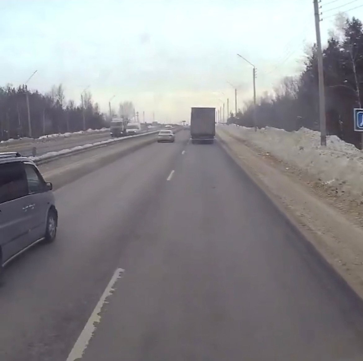 Водитель грузовика не успел вовремя отреагировать на замедление потока и при перестроении случайно зацепил едущий сзади автомобиль