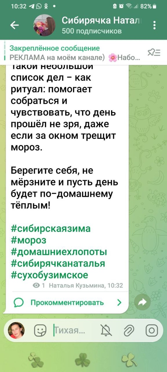 ! ❤️ Я благодарю каждого из вас, что вы присоединяетесь и остаётесь со мной, читаете, смотрите, комментируете. Для меня это очень ценно. Спасибо, что вы здесь! Будем двигаться дальше, вместе. #сибирячканаталья #спасибо #500подписчиков #сухобузимское