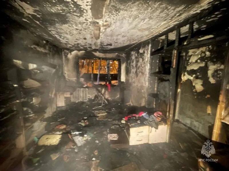 Огонь разгорелся накануне вечером в квартире на первом этаже жилого дома на Набережной. Там вспыхнули вещи и мебель. До прибытия спасателей подъезд самостоятельно покинули 15 человек, включая двоих детей. Еще шесть взрослых и два ребенка сотрудники МЧС эвакуировали со спаскомплекстами по маршевым лестницам.