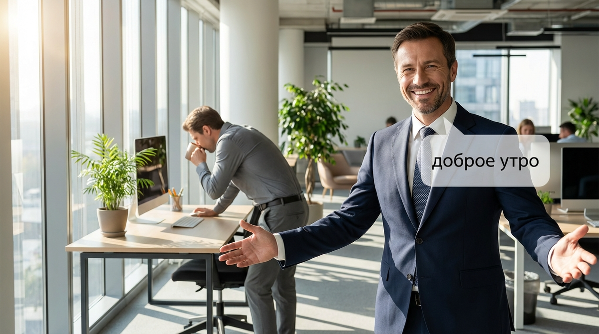 Захожу я как-то утром в офис, бодро так, с улыбкой до ушей — настроение отличное! Киваю коллеге, который кофе греет: «Доброе утро!» А он на меня посмотрел, будто я не человек, а голограмма. Буркнул что-то вроде «ага» и отвернулся к окну.