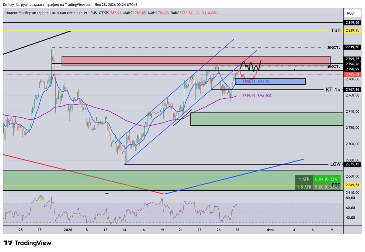 🏛 Индекс #MOEX2, по итогам торгов во ВТОРНИК вырос на +0,85%, закрывшись на отметке в 2785п. Вчера с утра индекс пошел в коррекцию и его давили плитами на вечнике и крупными продажами айсбергами по Лукойлу и Сберу. К обеду дошли до ключевого уровня 2750п и давление на бумаги и индекс прекратилось. Народ увидев это начал набирать позиции и если сначала данное движение выглядело как отскок, то ближе к закрытию основной и на вечерней сессии превратилось в какую то эйфорию. Новостных поводов для такой втарки на мой взгляд не было. Конечно вышли нейтральные инфляционные ожидания населения, хотя рынок ждал более высоких значений и несколько заявлений Трампа про "у Украины и России все хорошо" и главы МИДа Украины про подписание 20ти пунктного плана. Но это все ерунда, которой каждый день пруд пруди в новостных заголовках. И пока сомнения имеются. Так же на рост рынка повлияла растущая нефть и товарка в целом. Но как будет индекс чувствовать себя сегодня и какой выйдет принт по инфляции по