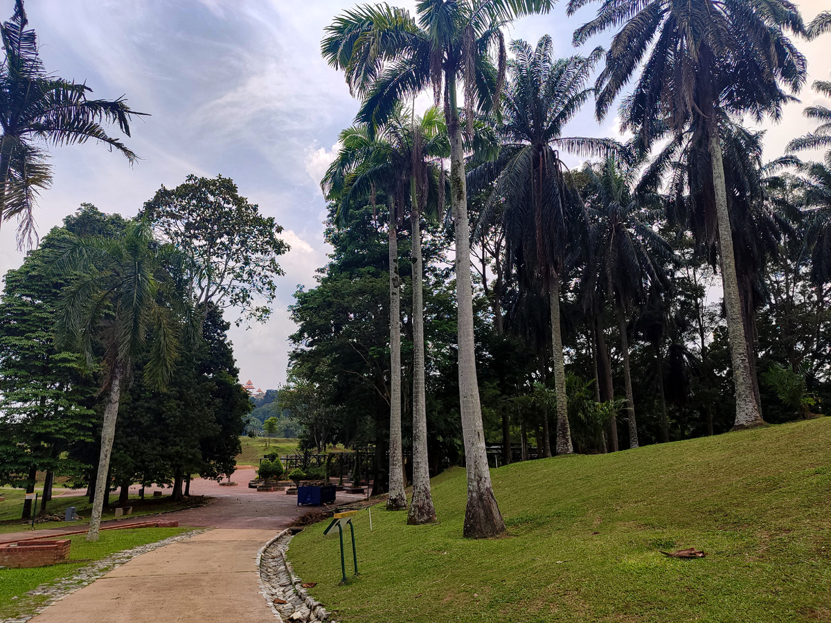 Последним местом на которое у нас хватало времени и сил в Путраджайе, стал ботанический сад. Сад большой, мы прошли небольшую часть. У меня от него остались двоякие впечатления, видимо наложилась усталость. Меня смутили проезжие дорожки и небольшой шум. В общем это ложные впечатления, потому что мы были с вещами, после перелёта, только и ждавшие сходить в душ и куда то лечь. Спасением стало небольшое кафе в саду с холодными напитками. А после поднявшись на холм мы открыли действительно красивые виды этого сада, домик в традиционном стиле. Здесь мы встретили первых обезьян в нашей поездке и далеко не последних. Расположенный на территории площадью 92 гектара, ботанический сад в Путраджае считается самым большим в Малайзии. Его часто называют «матерью всех садов» благодаря богатому разнообразию растений и уникальному ландшафту. В этом парке собрано свыше 750 видов флоры, которые объединены в 13 тематических зон, отражающих растительность разных уголков мира. Особое внимание привлекают