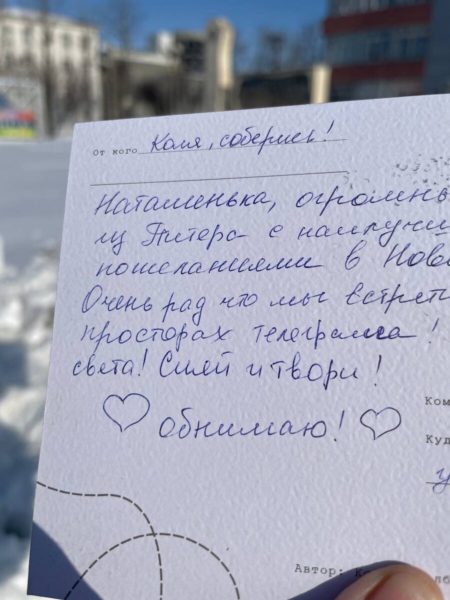 ?? До слез меня довел 😭 Я подписана на канал «Коля, соберись!». Там, собственно, Коля, который классно рассказывает разные истории, рекомендует классные фильмы посмотреть. А еще вяжет кардиганы и шапки, танцует бачату, пишет сценарии и других учит писать. И вообще он очень разносторонний! Короче, у Коли познавательно-развлекательно-залипательный канал, и там всегда весело, особенно в комментариях)) А сам он очень душевный парень, мастер агрессивных комплиментов, всегда поддержит морально и подберет доброе слово для каждого. Так вот, знаете, что этот Коля сделал? Он заморочился, и перед Новым годом отправил из Питера своим подписчикам по всей стране настоящие открытки, своей рукой подписанные. Не всем конечно, а кто захотел) Как вы можете догадаться по моему фото-видео отчету - я захотела)) Божечки, как же это приятно!🥹 Меня на этом красивом кусочке картона моментально унесло в прошлое, когда мы писали бумажные письма и отправляли друг-другу открытки ко всем праздникам. И ле