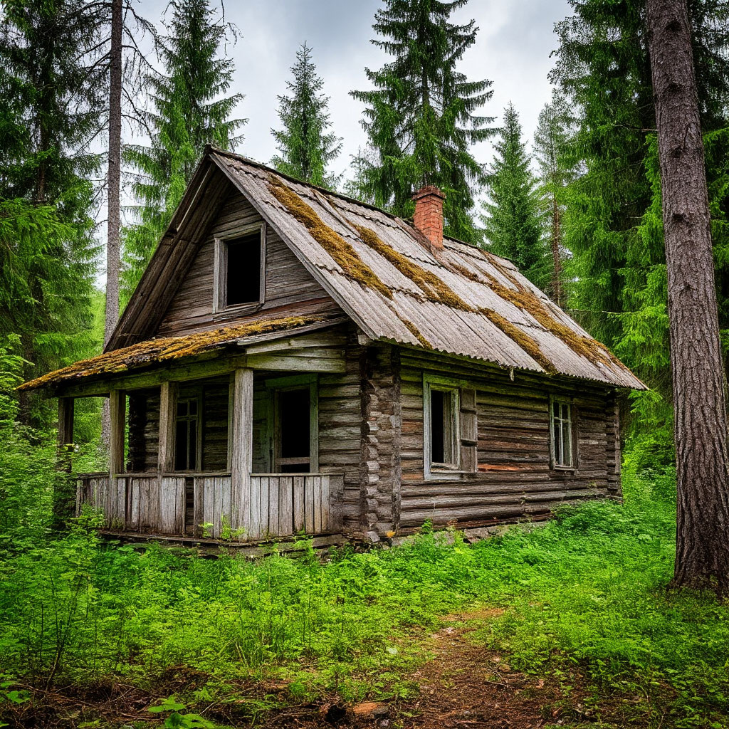 Рассказывают такую историю, передающуюся устно среди жителей деревень Русского Севера. История эта получила название «Чёртова избушка». Давным-давно в одной глухой деревушке жила семья крестьянская: отец с матерью да двое сыновей молодых. Жили небогато, но дружно, трудились много, всё своё хозяйство держали. Однажды осенью младшему сыну пришлось отправиться далеко в лес, помогать старосте деревни заготовлять дрова на зиму. По дороге сын заметил странную избушку посреди леса, совсем заброшенную и запущенную. Решил заглянуть внутрь — проверить, не занята ли кем-нибудь чужаками. Избушка была пуста, окна заколочены, дверь скрипучая, но удивительно тёплая атмосфера внутри словно манила зайти глубже. Парень прошёл внутрь, присел отдохнуть на лавочку возле печи, даже огонь в очаге сам собой загорелся. Стал парень приглядываться внимательнее: углы тёмные, пол грязный, стены чёрные пятна покрывают. И вдруг почувствовал себя плохо — голова закружилась, сердце забилось чаще. Испугался парень, вс