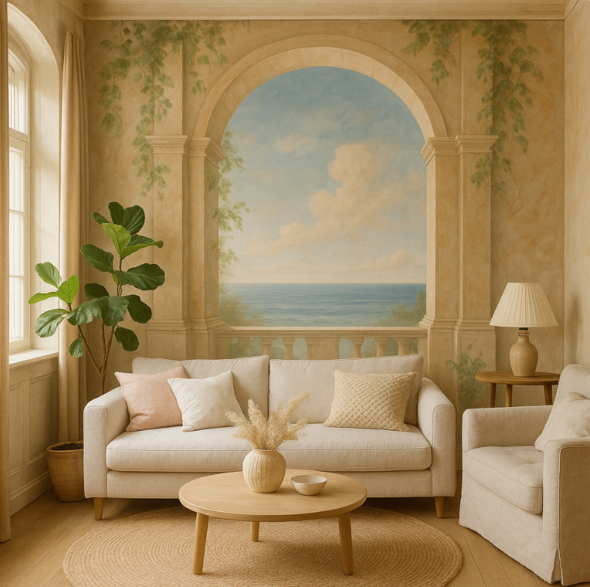— Оптическая фреска должна решать конкретную задачу: увеличить комнату визуально, добавить глубины, увести взгляд от недостатков планировки или разделить пространство. Формулируйте цель перед выбором сюжета. 2. Типы визуальных эффектов и когда их использовать
