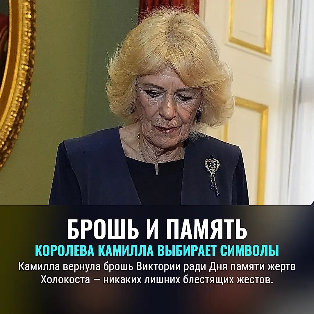 Потом понимаешь: нет, тут про то, как вытащить прошлое в настоящем и не переставать делать вид, что монархии ещё кто-то верит. На приёме у Чарльза с Камиллой снова главный герой — брошь. Но не очередная поп-звезда из королевской шкатулки, а старушка Виктория, точнее, её сердце, подаренное в 1897 году. Пришли не на бал — на День памяти Холокоста. Камилла решила: меньше шика, больше смысла. Мол, вот вам эмпатия, а не показуха. Сапфиры — ни к чему, когда рядом истории выживших, а портреты этих людей висят прямо в Букингемском. Гости в зале — не ради короны. Всем же ясно: выбирая «сердечную» брошь, Камилла не царствует, а будто подтверждает: прошлое — не пыль на полке, это груз, который вежливо таскают на каждое важное событие. Её муж, всё та же королевская скука, поздравил с памятью. Вместе со всеми зажгли свечу и ушли. Вещи в королевской семье — уже почти язык глухонемых. Кто понял, тот понял.🕯 Культура TODAY / Зарубежная культура ещё по теме