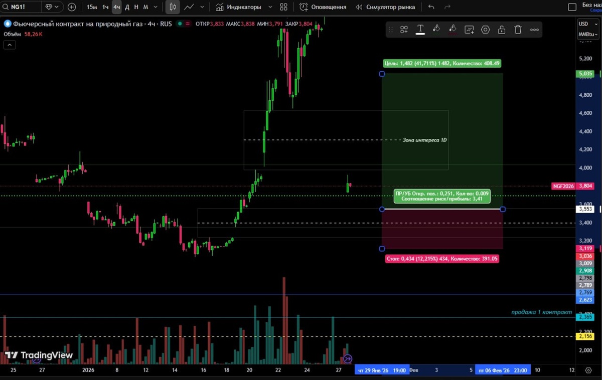 Есть точка по #NG, но стоп очень большой из - за высокой волатильности. Надо подождать,что расторгуют на младшем ТФ. Кого устраивает можете зайти. На скрине наш фьючерс.