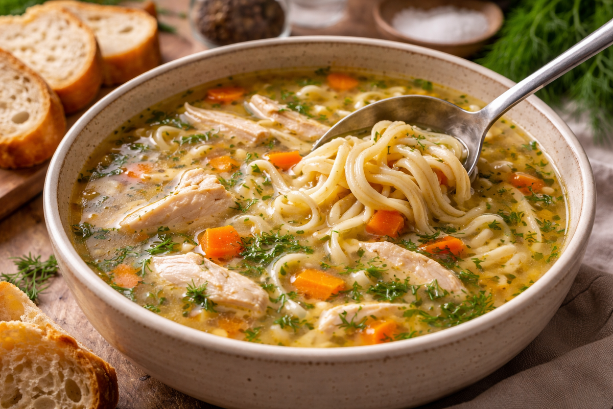 Этот суп с курицей и домашней лапшой ассоциируется с заботой. Его варят, когда кто-то устал, замерз или просто хочется домашнего уюта.