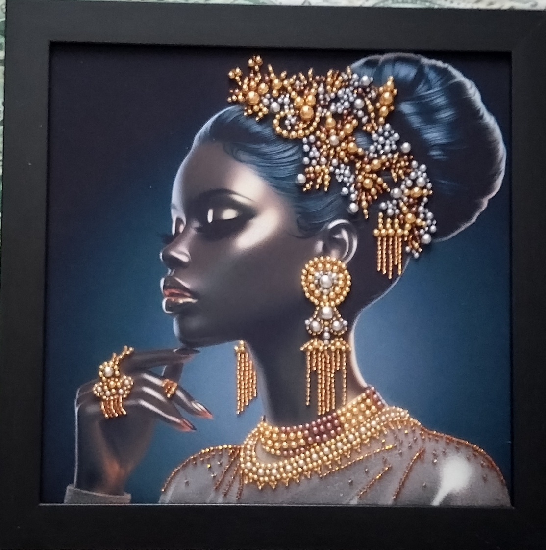 В январе мы вместе с другом закончили вышивать две картины. Первая картина "Роскошь" из бусин и бисера, размер 30 на 30 см.
