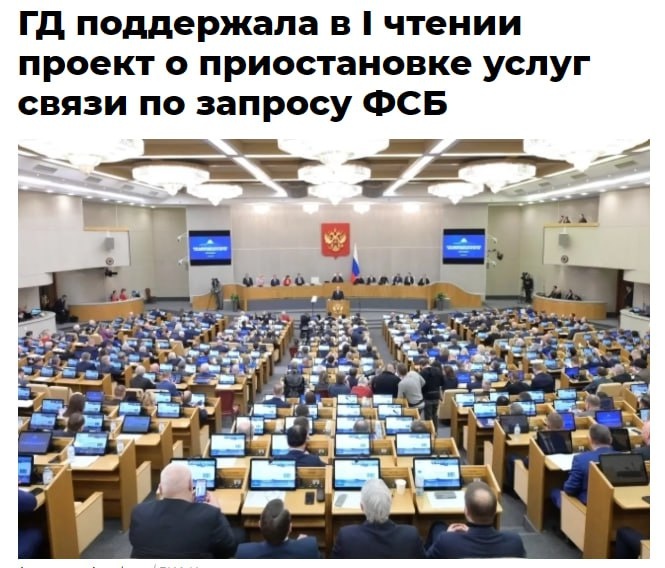 ⚡️ Госдума в первом чтении приняла закон, который позволяет ФСБ принудительно отключать россиянам мобильный и стационарный интернет, а также