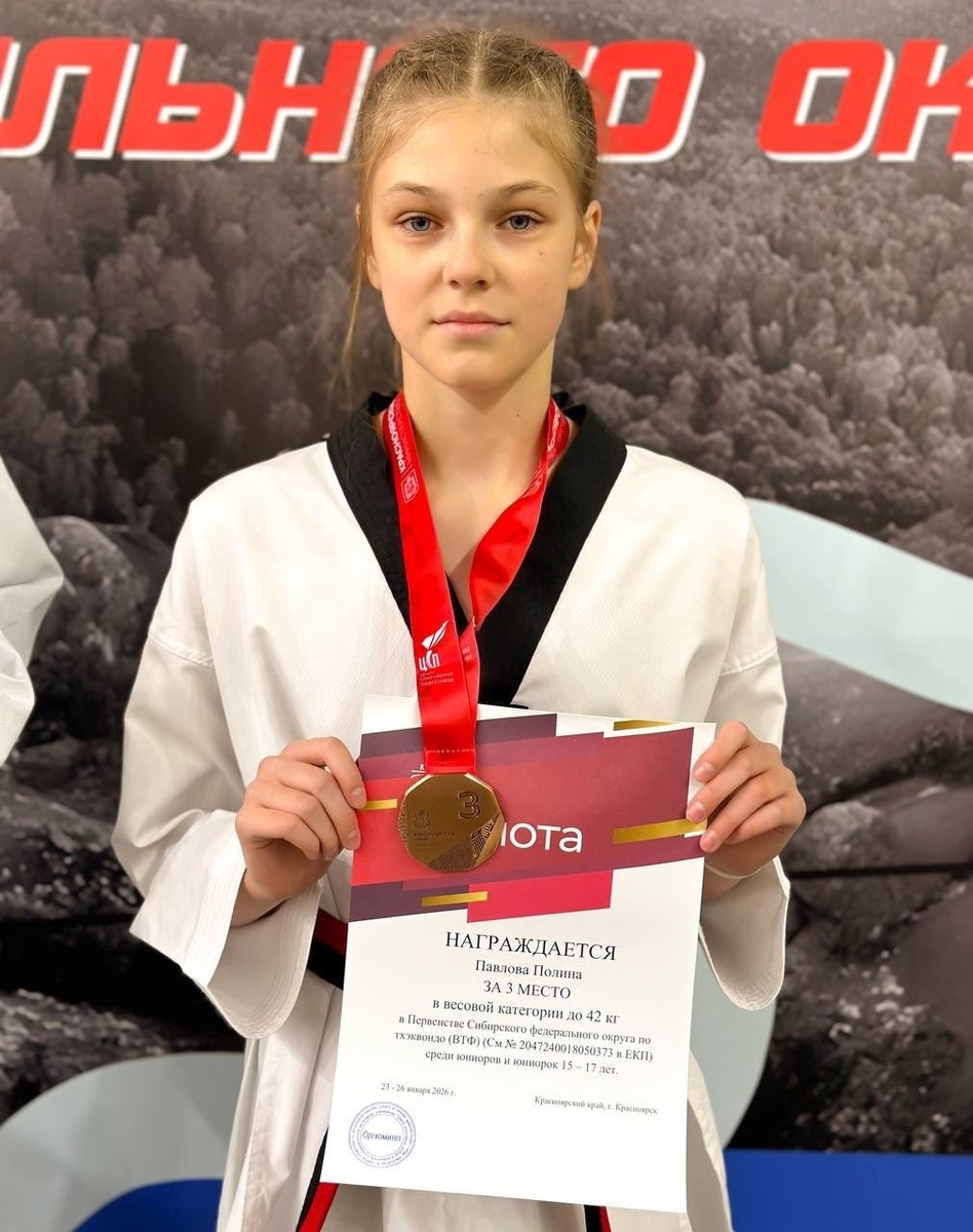В Красноярске с 22 по 24 января прошло первенство Сибирского федерального округа по тхэквондо среди юниоров и юниорок. 200 спортсменов из девяти регионов Сибири — от Алтая до Тывы, от Иркутской области до Омска и Новосибирска - в такой плотной конкуренции спортсмены спортивной школы олимпийского резерва имени В.П. Щедрухина показали характер и умение работать на результат. Золото турнира взяли Егор Хомутов (45 кг), Александра Григорьева (46 кг) и Любовь Маркина (59 кг). Серебряным призёром стал Пётр Криворот (48 кг). Бронзовые награды увезли Полина Павлова (42 кг), Александр Кишечкин (63 кг) Иван Сметанин (78 кг). За этими победными выходами на ковер — сотни тренировок и поддержка тренеров перед стартом. Команду готовили Артём Бахмисов, Данил Бутаков и Ян Кишкис. Поздравляем спортсменов и наставников!