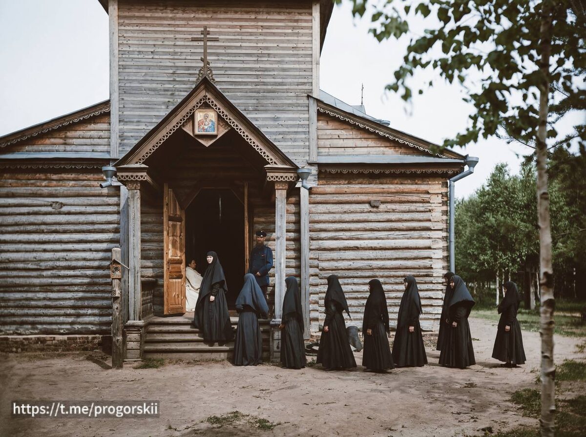Монахини Свято-Николаевского женского монастыря возле церкви Николая Чудотворца в селе #Подлесово , 1904